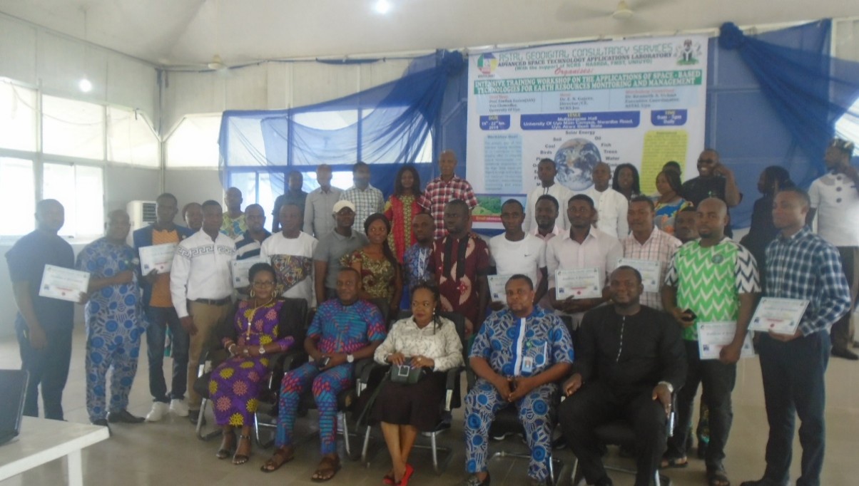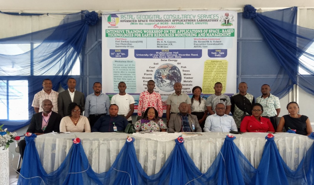 In efforts to generate non-budgetary income to the Laboratory, through the provision of scientific training and integrated capacity building under the Know-How-Technology Transfer (KHTT) scheme, a 5-Day Workshop on the Applications of Space-Based Technologies for Earth Resources Monitoring and Management was organized by ASTAL Geodigital Consultancy Services (AGCS) from Monday 18th – Friday 22nd November, 2019, at the University of Uyo Multi-purpose Hall